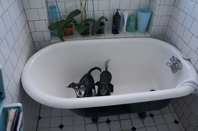 I pulled up at dusk to the giant pink mansion in the middle of the city and it was sensory overload just like my first visit to the city. The airbnb hosts apparently also run a bike rental business so they were busy seeing a large group off on bikes painted white with many colored lights all over. I carried my bags and the old wieners up the steep steps to my apartment and set off to my next task-food. My trusty sister had located the nearest vegetarian restaurant for me which happened to be just one tenth of a mile away. I was half way to the restaurant thinking I was probably headed the wrong direction because the neighborhood didn’t look restauranty, when I smelt it. The amazing aroma of carbohydrates and onions quickly led me to "Seed" where the wieners and I were greeted by two separate posses of people impressed with my dogs’ cuteness. These New Orleanians just get it!! Of course I know I have the cutest dogs in the world but not everyone seems to notice. My hounds were noted quickly and voraciously. I tied them to a bench as I stepped into seed to place my take out order and noted the crowd of people gathered round my pups taking photos.